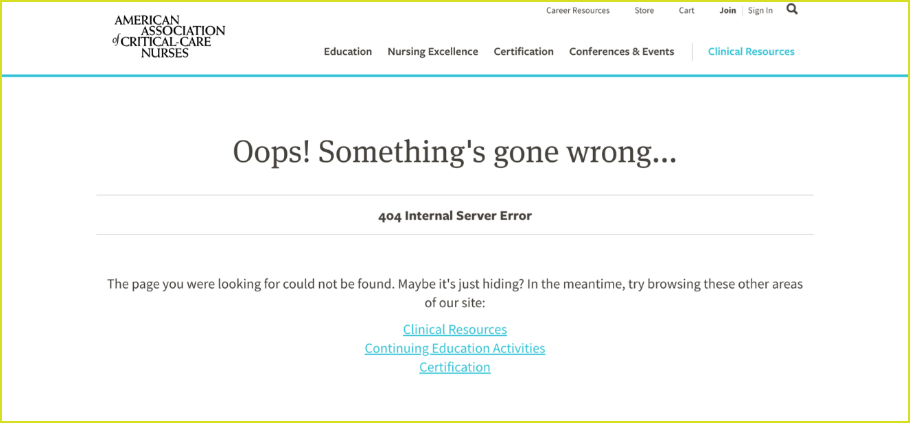 IMPORTANT! Please DO NOT provide users with direct links to claim CEs! This is to avoid the sharing of links with users who haven't completed modules. Should a user report receiving an error message when trying to log in to aacn.org to complete the evaluation for claiming their CE (see image below), please provide the following response with troubleshooting instructions.